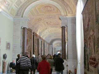 We next made our way down the length of the Vatican museum, where we saw hundreds of sculptures, paintings, tapestries, tubs, you name it. Even the floors and ceilings were part of the art and culture. I can't even begin to document all of the stuff we saw. We were allowed to take photos of just about everything, except for the Chapel itself. Brian basically warned us that we would be drawn and quartered if we even thought about it. Okay, nothing that bad, but he did warn us that if we were caught taking photos, the guards would not only insist upon deleting the photo, but they would demand the entire memory card to destroy. I didn't want to risk it, so I put the turtle away. However, people were still trying to take photos and all they got was a light scolding by an unenthusiastic guard. WTF. Where was the violent memory card removal used as an example to everyone? Dangit.